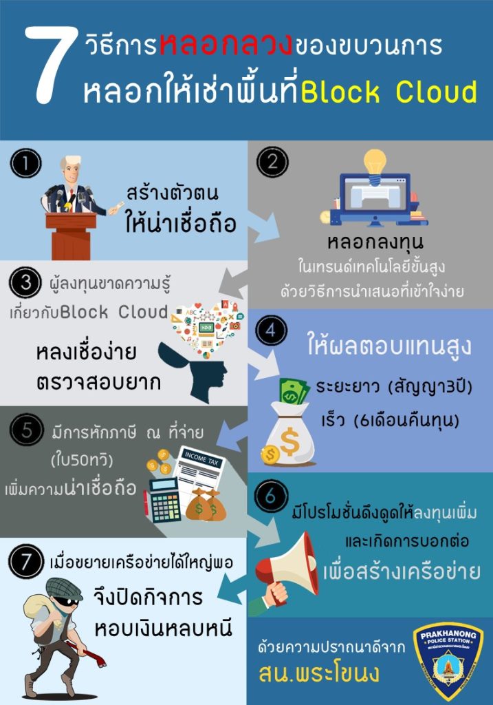 7 วิธีการหลอกลวงของขบวนการหลอกให้เช่าพื้นที่ Block Cloud