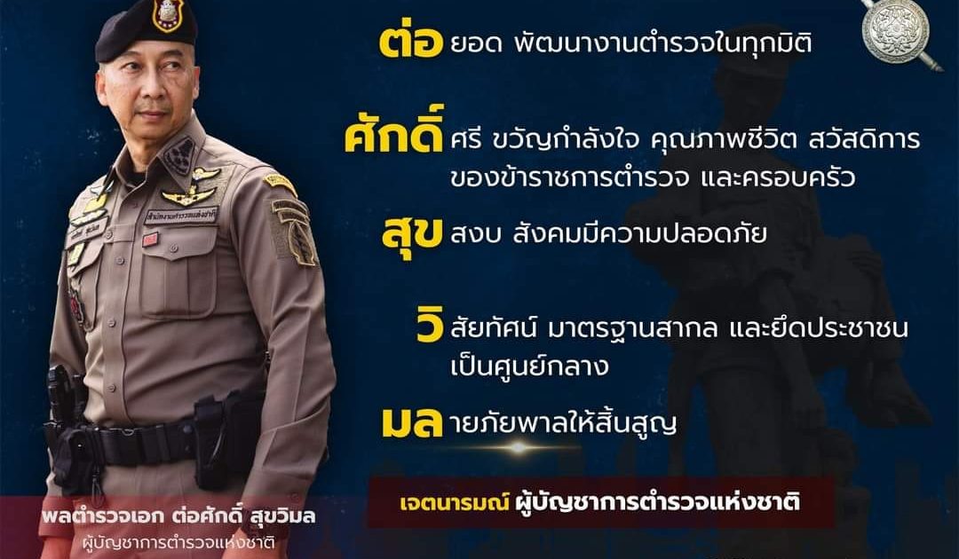 “พล.ต.อ.ต่อศักดิ์ สุขวิมล” ผู้บัญชาการตำรวจแห่งชาติ ประกาศเจตนารมณ์ ในการ “นำ” บังคับบัญชา ขับเคลื่อนสำนักงานตำรวจแห่งชาติ พัฒนางานตำรวจทุกมิติ เพื่อเป็นองค์กรปราบปรามอาชญากรรม บังคับใช้กฎหมาย ในระดับมาตรฐานสากล ยึดประชาชนเป็นศูนย์กลาง สร้างความสงบสุขแก่สังคม